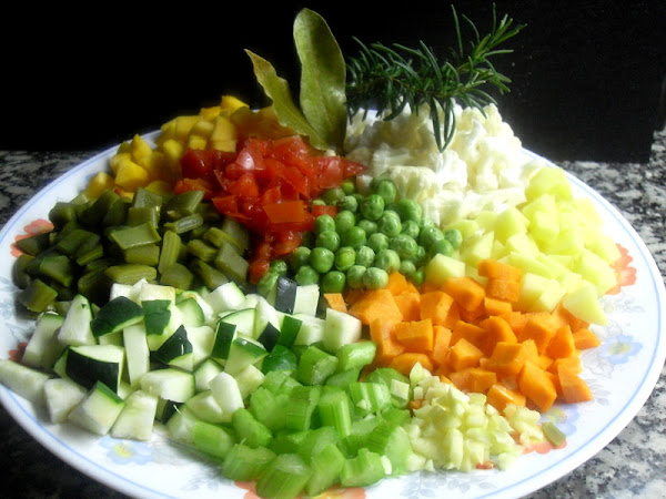Elaboración:Lo más entretenido de la preparación de ésta sopa, es el lavado, pelado y cortado de las diferentes verduras y hortalizas.
