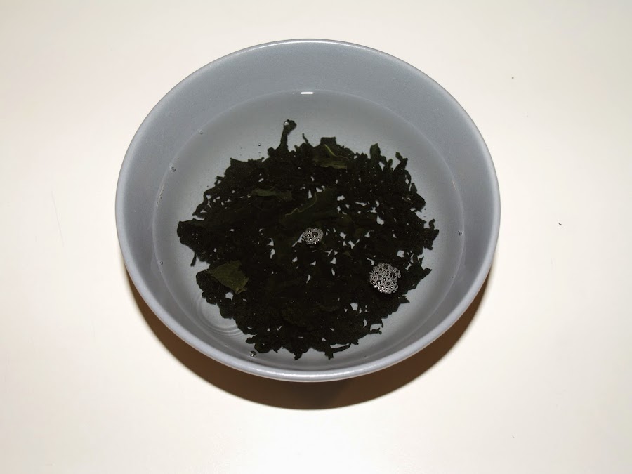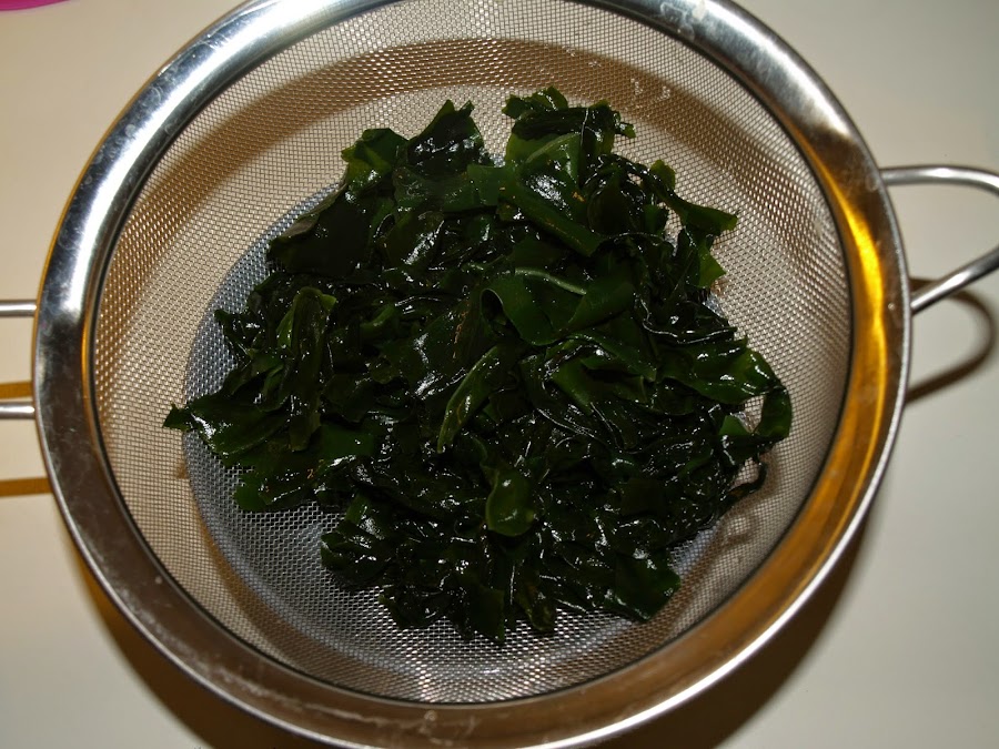 - En un bol ponemos las algas wakame con agua para hidratarlas. No hace falta poner demasiadas, crecen bastante.