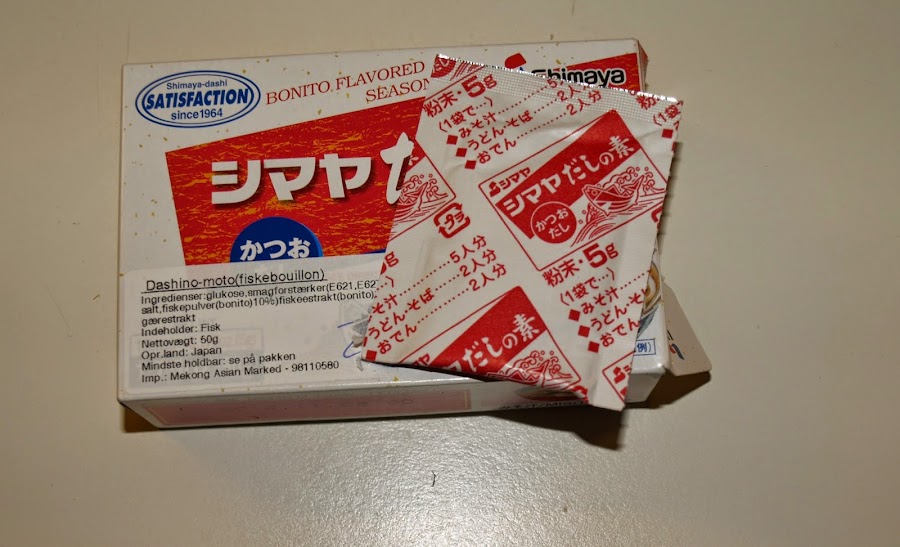 1 sobre (5 gramos) de caldo dashi (de bonito. Para hacerlo vegetariano se puede añadir el de alga kombu)