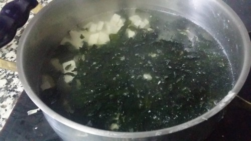 Retira del fuego y añade el miso disuelto, remueve con una cuchara