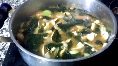 Algunos de los ingredientes quizás cuesten un poquito de encontrar, aunque cada vez se encuentran más tiendas especializadas en este tipo de comida. De todas formas el alga wakame deshidratada la puedes encontrar en el supermercado Consum, en la parte de la verdulería. El tofu ya se encuentra de forma general en los supermercados. Lo único que puede costarte un poco en localizar será el miso y el caldo dashi. Este caldo es muy fácil de preparar, aunque también lo puedes encontrar deshidratado en algún supermercado asiático. Yo no lo he preparado ni lo he comprado porque como uno de los ingredientes es el bacalao seco o katsuobushi así podía comer mi hija vegetariana.