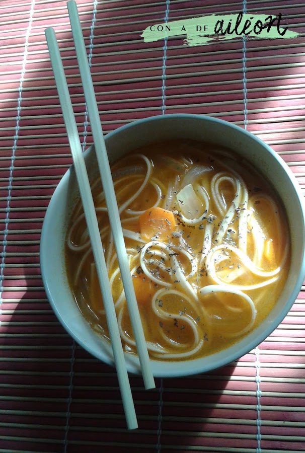 - El UDON es un fideo o tallarín grueso japones, hechos con harina (los mios de trigo integral y arroz).