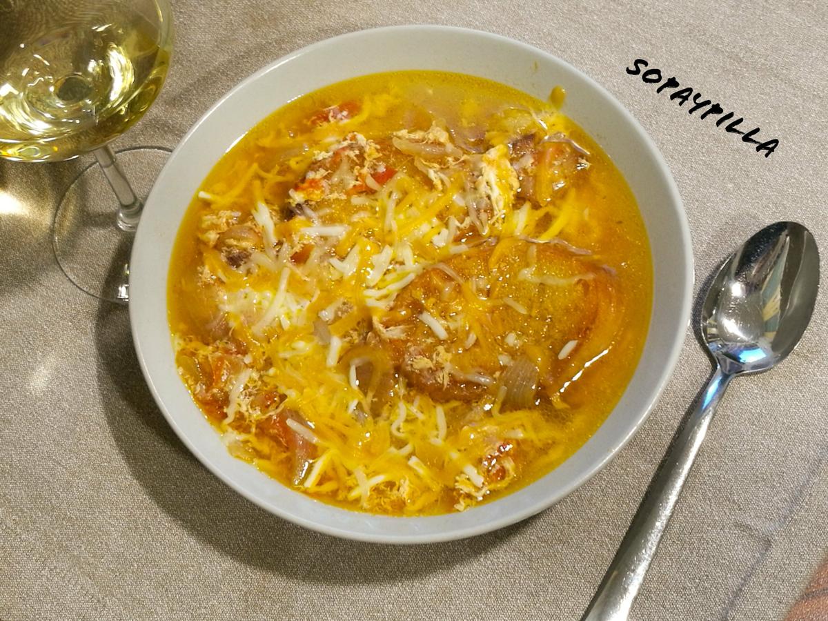 Una sopa catalana que recordaría a la sopa de cebolla francesa. La encontré en el libro «Corpus del patrimoni català» y es una sopa sencilla, de orígen humilde y que está realmente requetebuena. No escatiméis con el queso, está ummmm deliciosa!