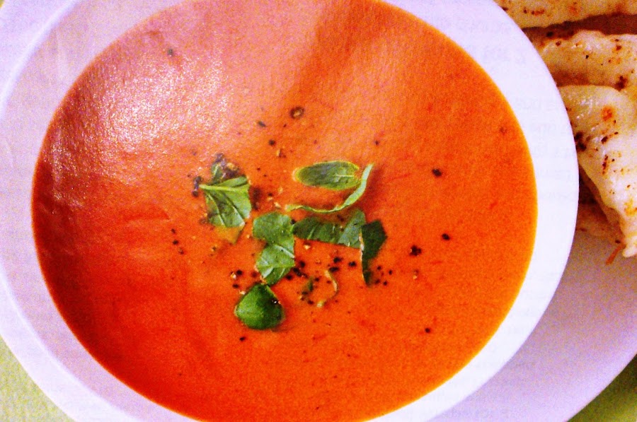 Ponemos los tomates, el azúcar y el caldo junto con el Tabasco en una cazuela a fuego medio. Añadimos sal y pimienta. Lo cocemos lentamente 5 o 10 minutos. Añadimos el mascarpone y batimos hasta conseguir una consistencia fina y homogénea. Lo volvemos a poner al fuego otros 10 minutos más a fuego muy lento. Al servir ponemos las hojas de albahaca partidas por encima de la sopa.
