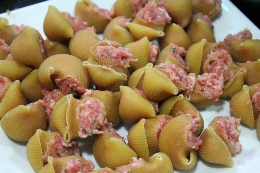 Cogemos los galets y empezamos a rellenarlos con cuidado de que la carne entre bien y con paciencia, ya que este proceso requiere de mucha paciencia.
