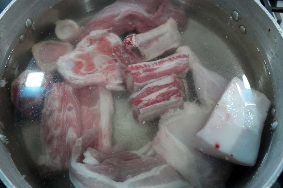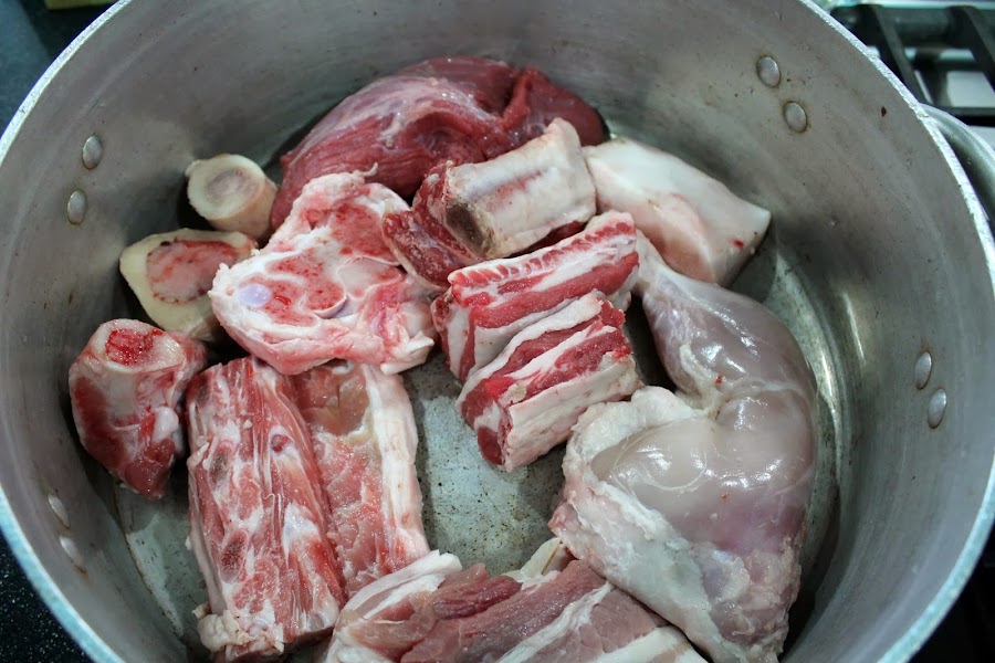 En una olla ponemos toda la carne y la cubrimos de agua y llenamos la olla dependiendo de la cantidad de carne y del tamaño de la olla.