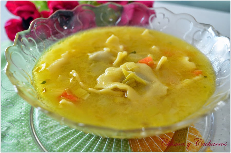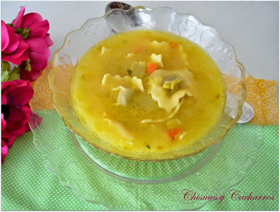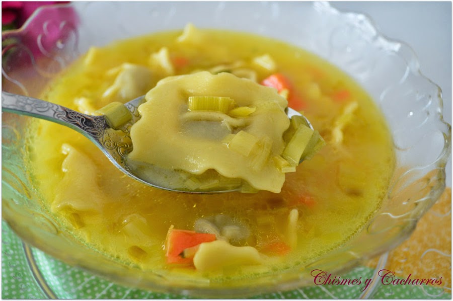 Una sopa rápida y completa. Los tortellinis, puedes poner los que más te gusten.