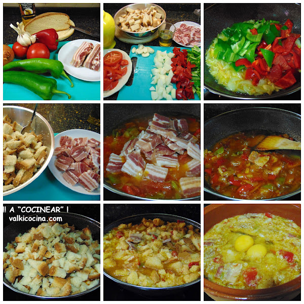 Me comentaba Carmela, que a ella le gusta hacer esta sopa muy básica, y que lo más importante, aparte de una buena hogaza de pan cateto asentado de 1 o dos días y un buen aceite de oliva ( que ella compra directamente de molino ), .. no es tanto añadir demasiadas cosas, sino utilizar buenos productos para que hacer un sofrito en condiciones ( teníais que ver los tomates que llevaba y que olor, .. para empezar con ellos a mordiscos ).