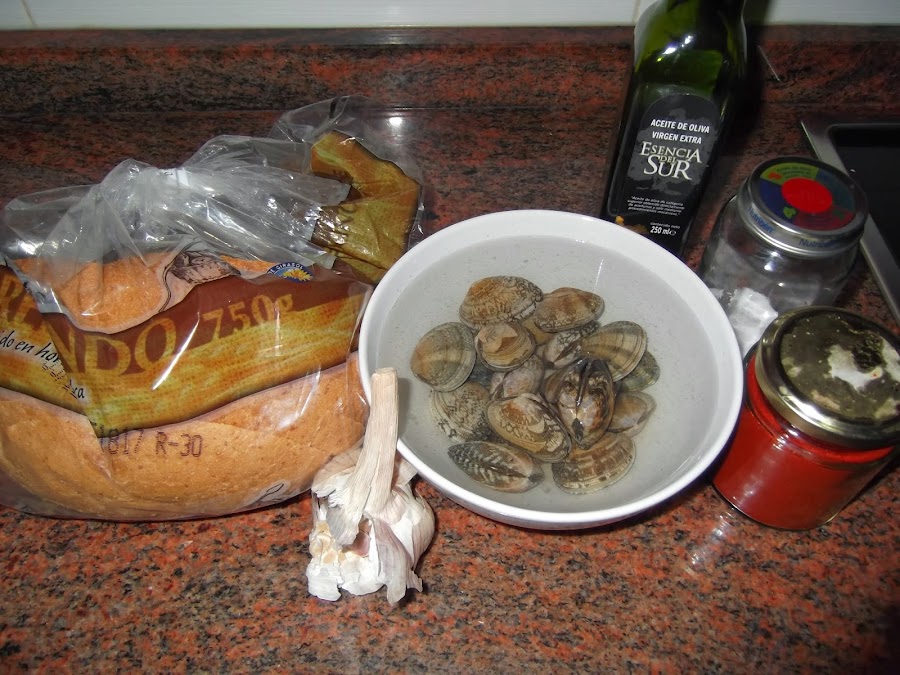 Lo primero que hacemos es poner las almejas en agua durante un par de horas y cambiarles varias veces el agua para retirarles toda la arena.
