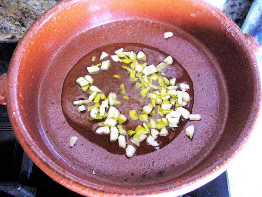 Trocear los ajos como más nos guste y freírlos en un buen aceite de oliva, partiendo del aceite frío.