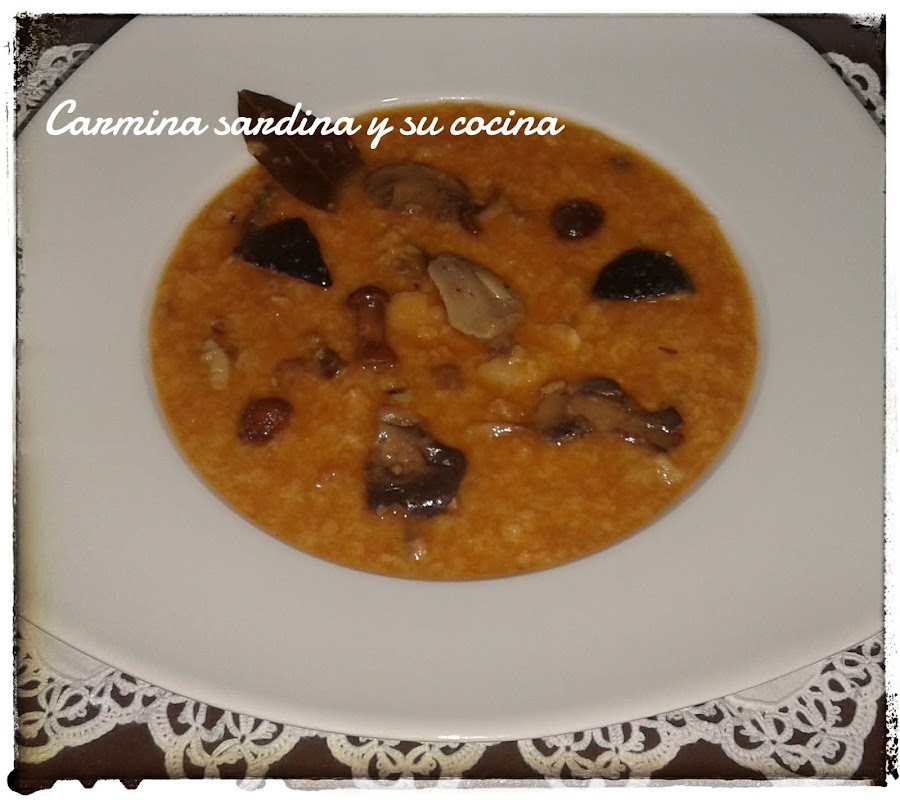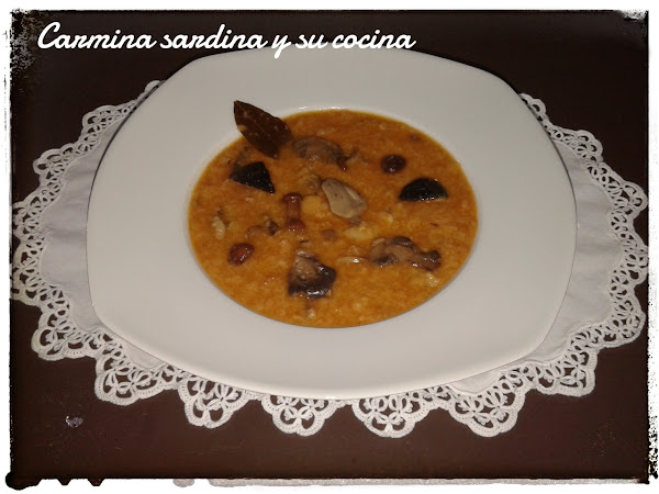Cuando empieze a hervir sazonamos y añadimos las setas preparadas.