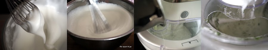 Montar la clara de huevo con el azúcar glass. Añadir a la mezcla de almíbar y zumo de lima, y mezclar suavemente. Incorporar la mezcla a la heladera y seguir las instrucciones de la máquina. Cuando el sorbete empieza a coger consistencia añadir las hojas de albahaca y la piel de lima picadas.