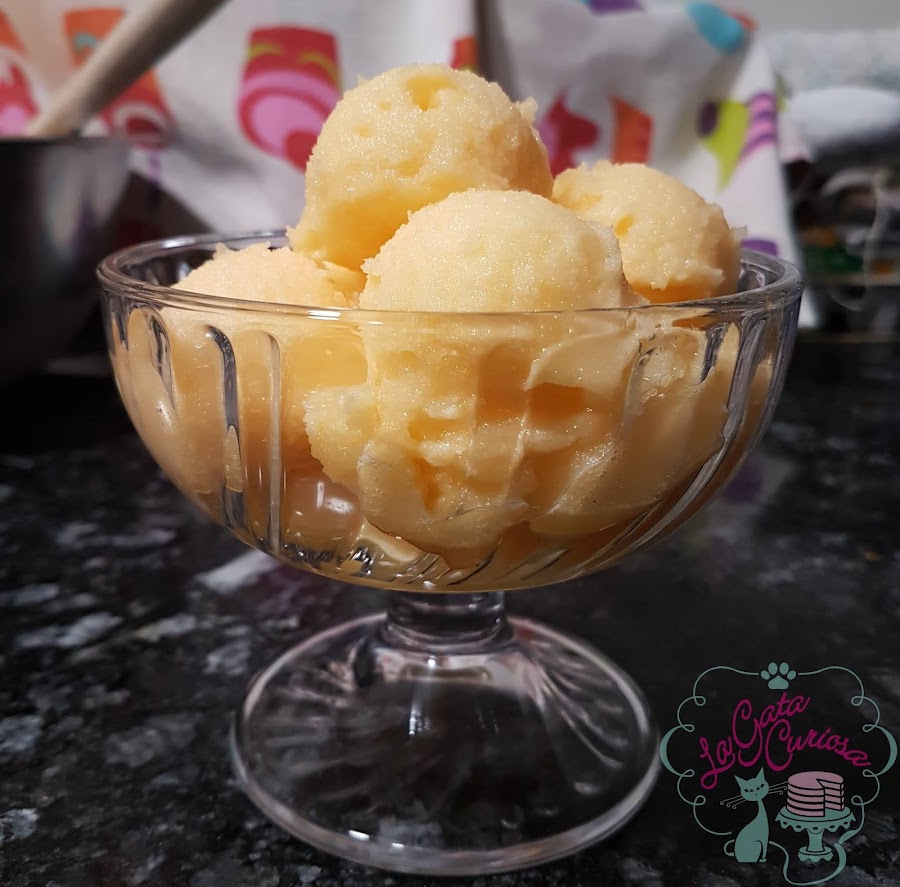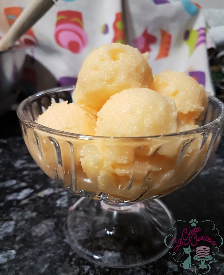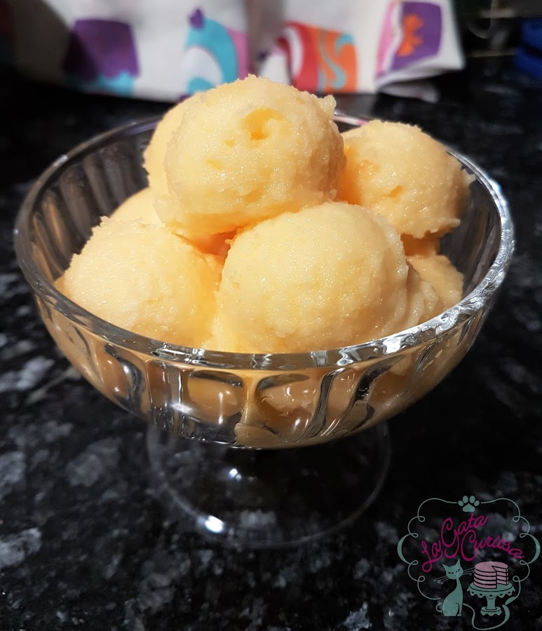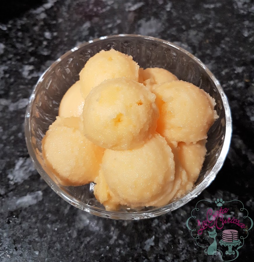 Hemos preparado una mermelada de mandarina que no voy a subir porque nos quedó bastante amarga porque nos pasamos poniendo piel, posiblemente aún pueda preparar algún bizcocho de mandarinas, pero ellas mismas estaban pidiendo que las hiciera en sorbete, no me he podido resistir, y está muy bueno, frío pero bueno.