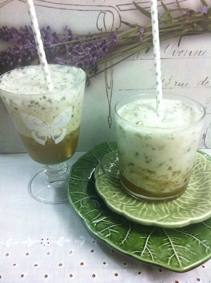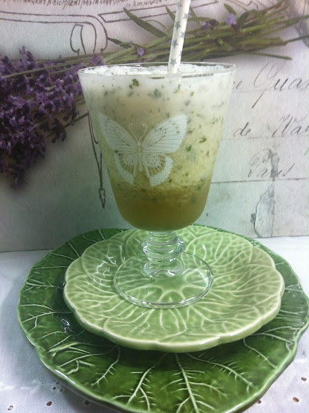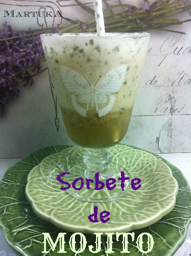 He tomado la receta de Directo al paladar, adaptada a los ingredientes que tenía en mi casa, pero no me ha salido como a ellos. Me imagino que mi ansia por tomar cuanto antes en estos cálidos días el refrescante combinado ha hecho que no tuviera el reposo adecuado en su congelación. No importa, estaba muy rico y os lo recomiendo.