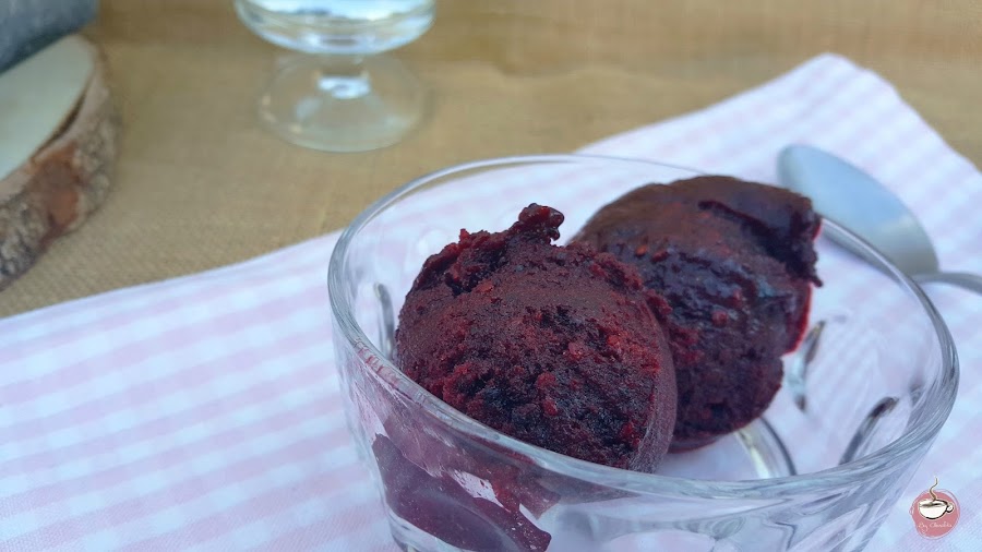 Las moras de cosecha propia nos han dado juego. Gorditas y muy sabrosas. Además de mermelada y comerlas a puñados, nos han sobrado unas pocas para preparar este impresionante sorbete. Más refrescante que los helados cremosos porque no lleva nata (crema de leche), lo cual lo hace ideal para tomarlo de postre después de una comilona al aire libre, o.... con el calor que sigue haciendo, para comerlo a cucharadas ¡¡directamente del envase!!