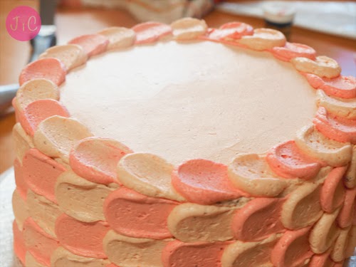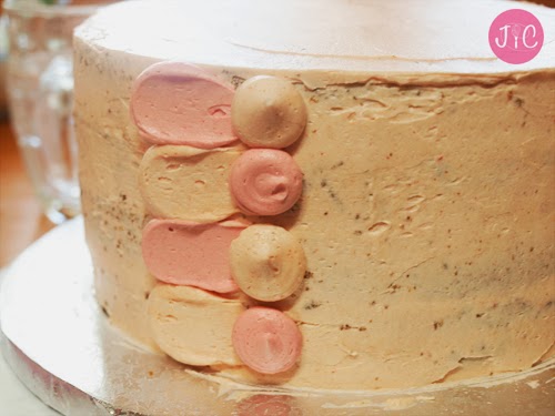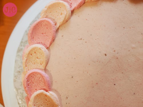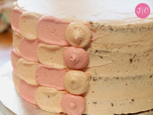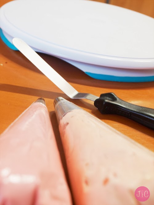 - Este segundo piso lo cubrimos con buttercream de fresa en vez de con mermelada. Yo he utilizado del más pálido, del que no lleva colorante.
