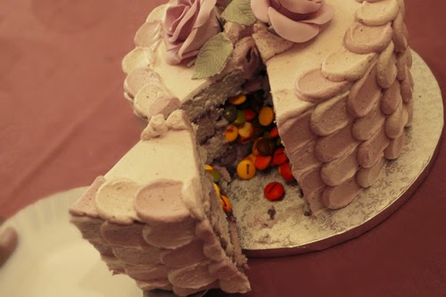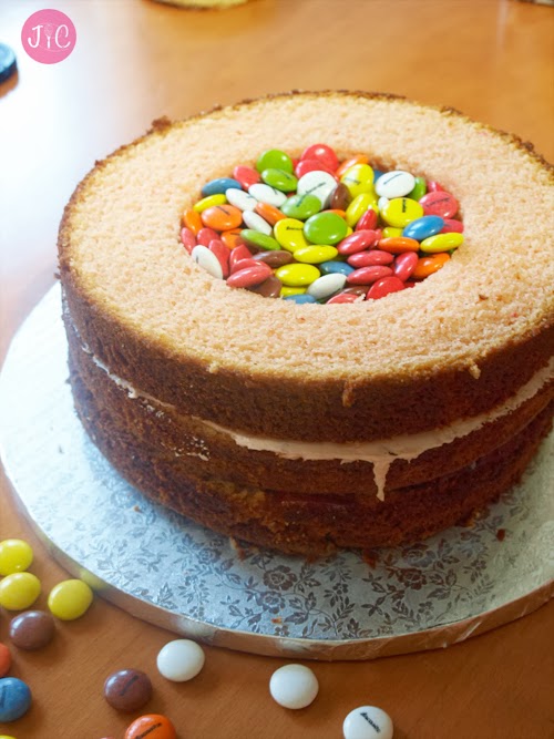 La verdad es que la sorpresa es grande cuando se disponen a cortar la tarta y aparecen taaaaaantos lacasitos de dentro. ¡No se lo esperan! Obviamente era sorpresa, si no, no hubiese tenido tanta gracia.