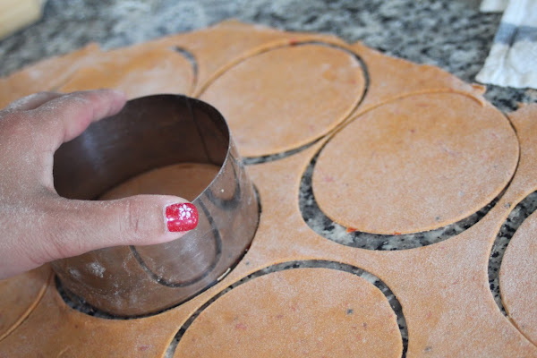 1)Triturar el pimiento asado, luego incorporar el huevo a la harina junto con la pasta de pimiento y una vez unido todo, llega un momento que la el tenedor es imposible de utilizar. Ahí comenzamos el amasado hasta obtener una pasta uniforme.