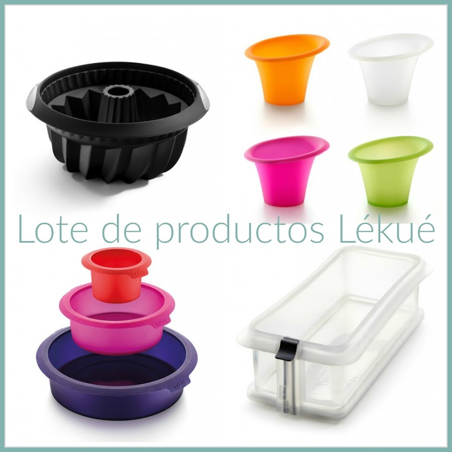 Ah! que queréis saber en qué consiste el premio!? Pues el premio consiste en un fantástico lote de productos de Lékué formado por: Molde Savarin, Kit Surprise Cake, Molde rectangular desmoldable de 24 cm y el Minute Cake! O lo que es lo mismo, esto: