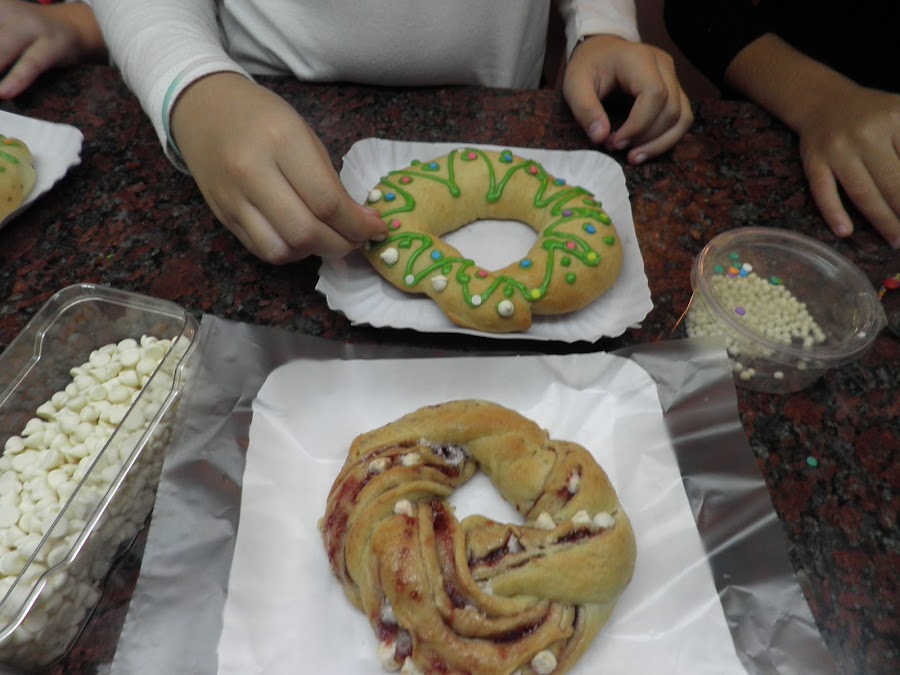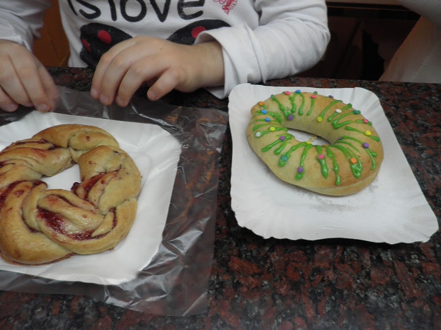 Y quiero mencionar algo de manera especial, algo que me mató realmente (emocional, no literalmente, je) es ver unas fotos con manos chiquititas. Son los nenes y nenas del Taller de Cari. Hicieron: Rosca rellena de frutos rojos (algunas con pepitos de chocolate blanco, trocitos de choco negro o dulce de leche) y Minitorta de limón y naranja. ¡Unos genios! ¿No les dan ganas de intentar cosas nuevas al ver esto? A mí, sí. Muchas.