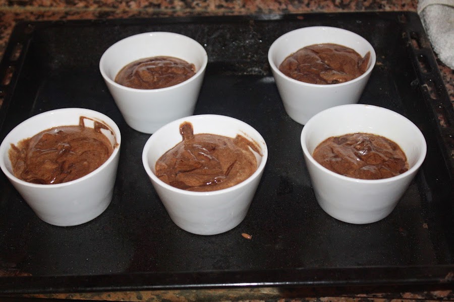 Repartimos la mezcla en los moldes, y horneamos durante 40-15 minutos a 180ºC con el horno precalentado.