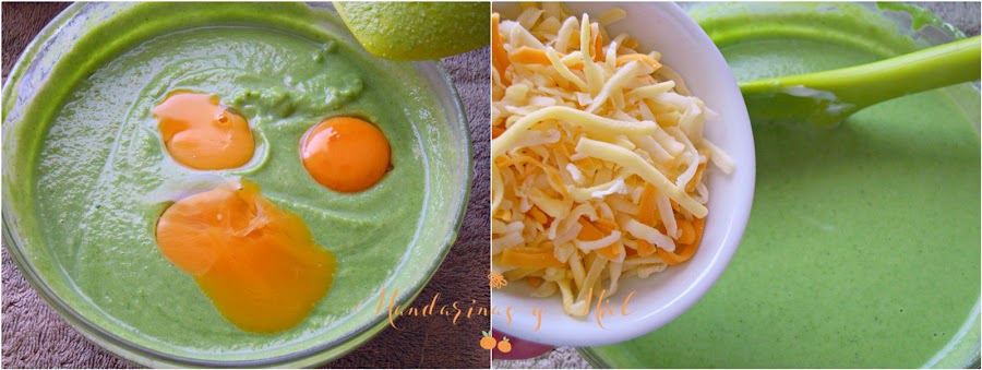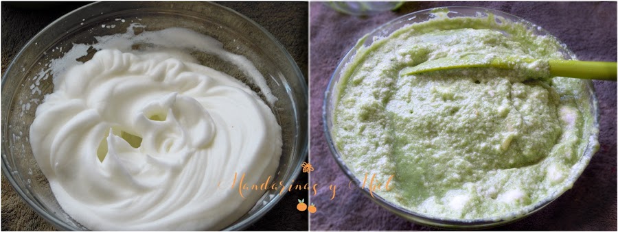 Añade las claras montadas a la crema de brócoli, removiendo con cuidado, de arriba abajo para que no se bajen.