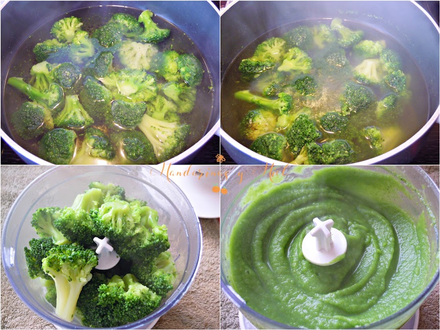 Una vez cocidos, tritura los ramitos con una picadora o pasapurés y añade un poco del caldo de su cocción.