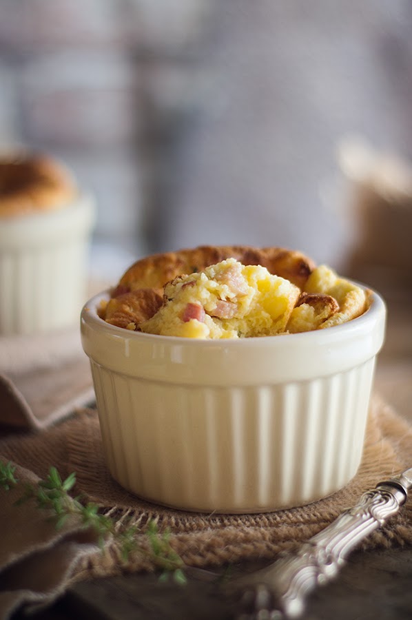 Más allá de la belleza, deciros que está riquísimo. El queso le aporta el toque cremoso y el bacon el contraste salado delicioso. Hay que servirlo con rapidez si queremos que luzca su altura, pero ya sabéis que realmente la belleza está en el interior, así que alto o bajo será un éxito!!!