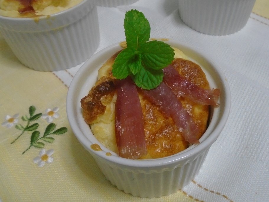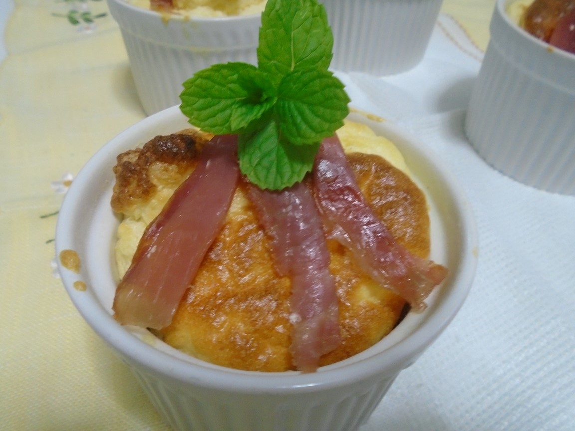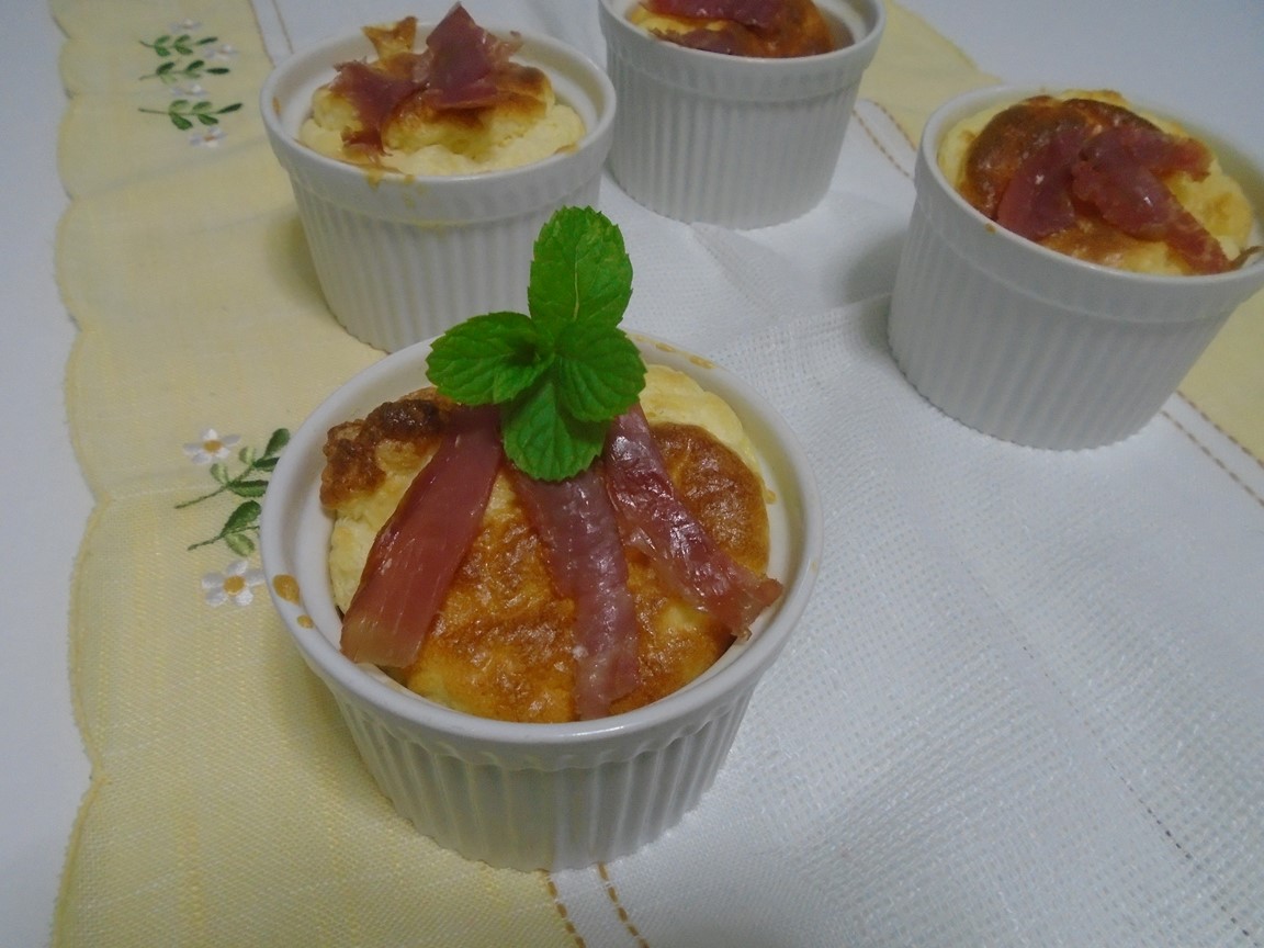 Servir el soufflé con el jamón tostado por encima y decora con perejil o unas hojitas de menta.