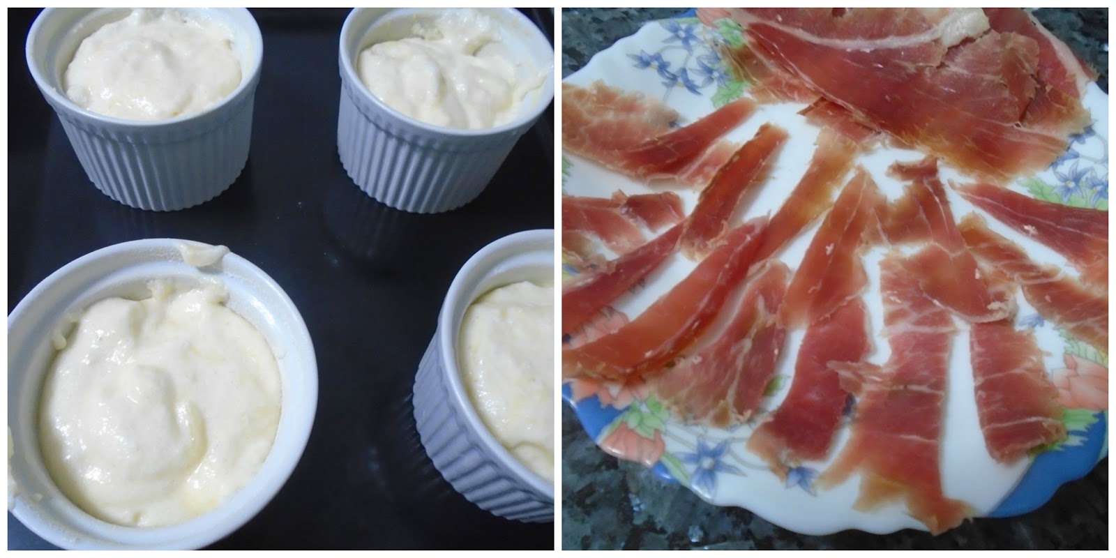Repartimos el preparado anterior en los moldes, rellenando su 3/4 partes, por que si los llenamos hasta arriba al suflar en el horno, se nos puede salir del molde parte de la mezcla, por ese motivo, rellenaremos las 3/4 partes del molde.