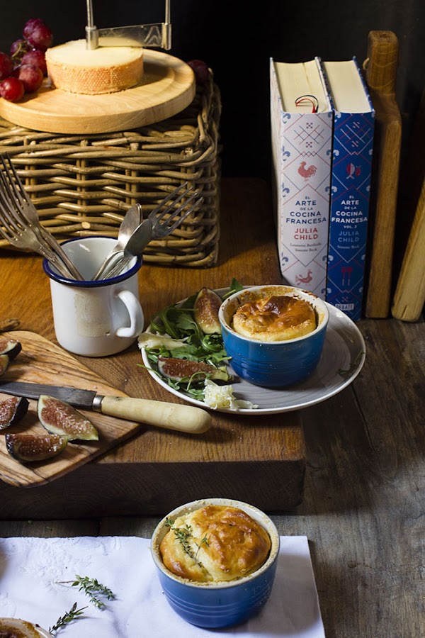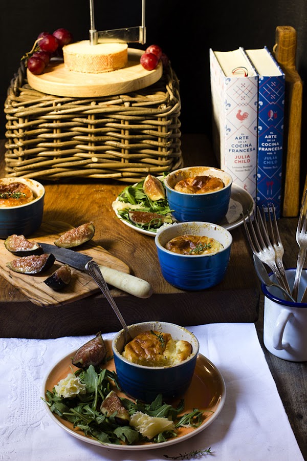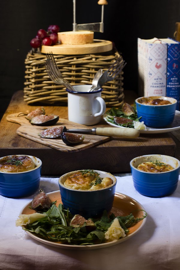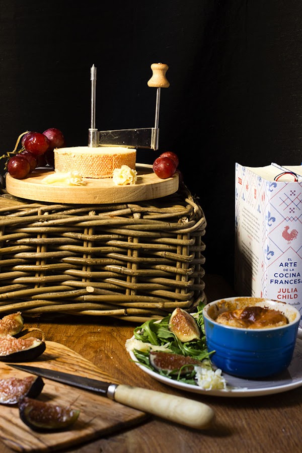 He seguido al pie de la letra la receta del libro, tan solo en lugar de utilizar un molde más grande, he usado éstos preciosos ramenquines Le Creuset, que he presentado acompañados de una sencilla y rica ensalada de rúcula, higos y rosas hechas con la Frisette Tellier pensada para el queso suizo Tête de Moine. Espero que os guste, la receta la podéis encontrar en el blog de Claudia&Julia, pinchando AQUÍ.