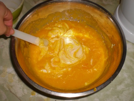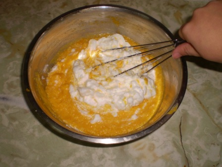 Batir las 4 claras a punto de nieve. Agregar a la preparación.