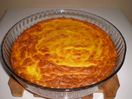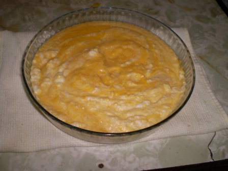 En un recipiente para horno, echamos un poco de aceite en aerosol (o spray vegetal) para que no se pegue, vertimos la preparación y al horno 180º - 200º por 40 minutos aprox.