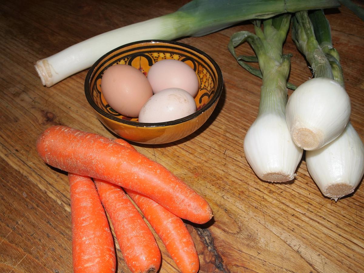 Lavamos y cortamos en rodajas las zanahorias, cebollas y puerro y los cocemos con sal hasta que estén blanditos. Varias opciones para cocinarlas: