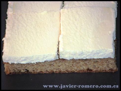 Yo he utilizado una base de bizcocho que hice con la masa que me sobró de las magdalenas de caramelo. Le he dado forma rectangular para que coincida con la medida del helado y la he emborrachado con almíbar de ron. Para hacerlo he utilizado las 4 cucharadas soperas de azúcar que he puesto en un cazo al fuego con el agua. Después de cocinarlo durante unos minutos a fuego fuerte y cuando ya se ha espesado lo suficiente, le he añadido el ron, unos minutos mas al fuego para que se evapore el alcohol y dejo enfriar.