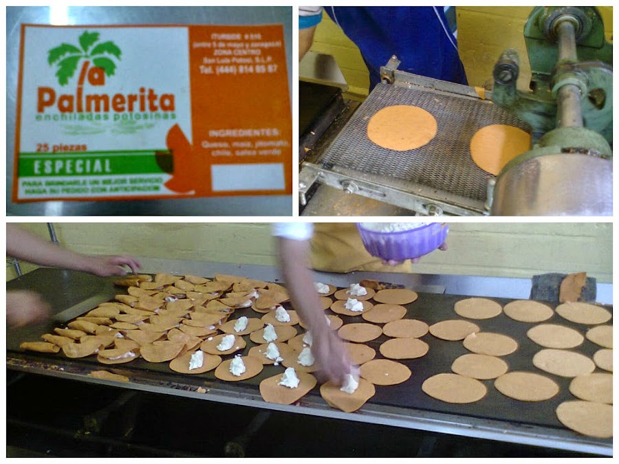 Todo un sistema de producción en serie... y he de comentarles que tienen de distintos tipos, la comercial, en la que el relleno es en menor cantidad y que es más picosa, y también más económico; las tradicionales, que tienen un poco más de relleno y las especiales, que son las que a nosotros nos gustan, pues contienen una mezcla de quesos, y no tienen tanto picante, pues a mis niñas no les agrada mucho, prefieren sentir mayor cantidad de queso que de picante... hay para todos los gustos...