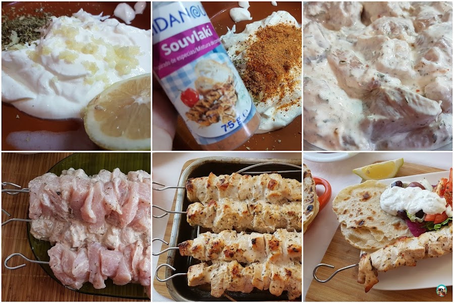 Souvlaki de pollo,elaboración: