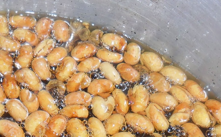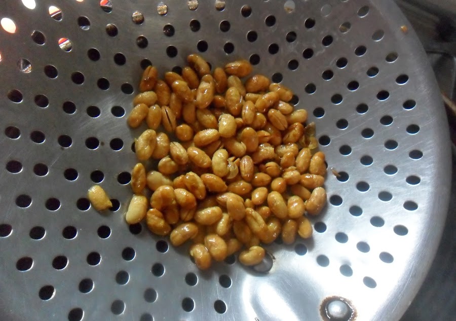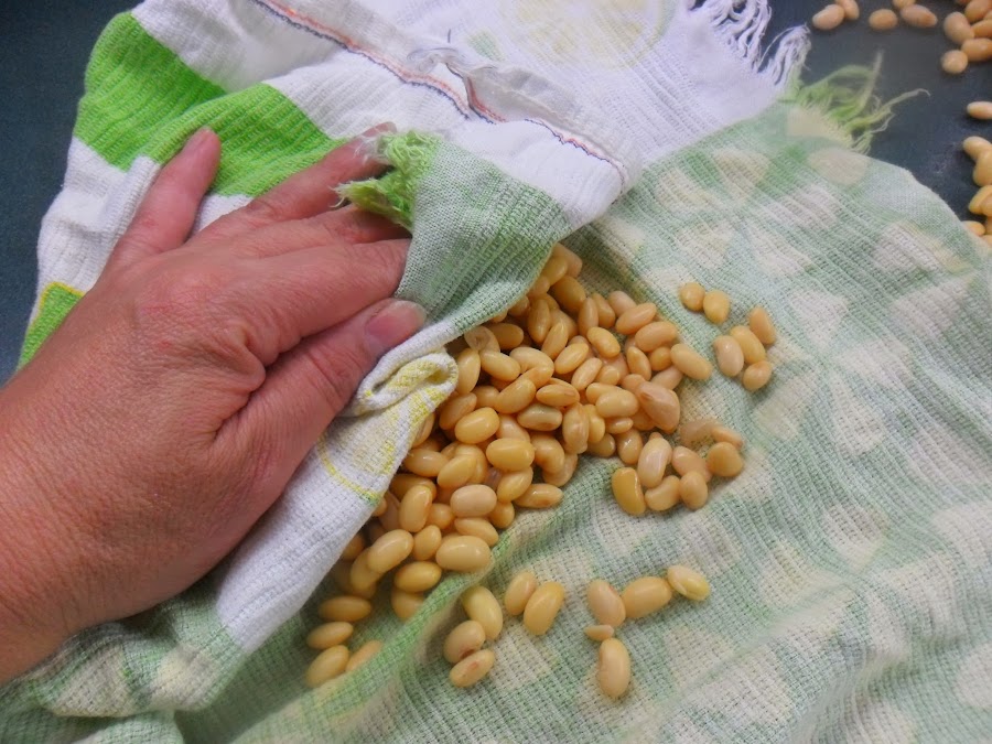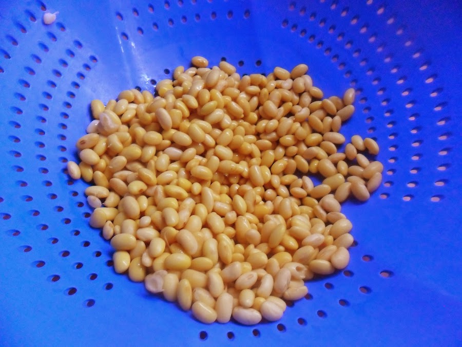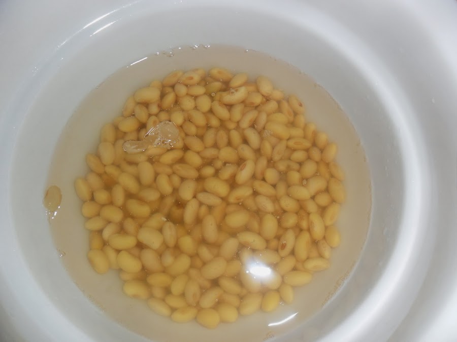 Ponga en remojo con suficiente agua los frijoles de soya la noche anterior
