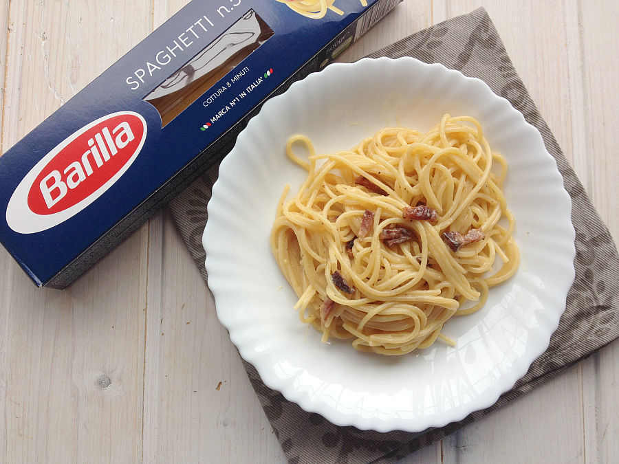 La salsa carbonara tradicional es sencilla de preparar y con pocos ingredientes. Una receta fabulosa para salir del paso un domingo {por ejemplo} que nos hemos quedado con la nevera medio vacía en casa.