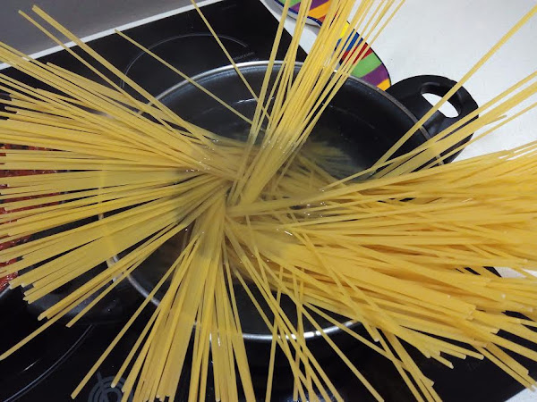 Ponemos una olla con abundante agua y una cucharadita de sal. Cuando rompa a hervir agregamos la pasta y cocinamos el tiempo que indique el fabricante.