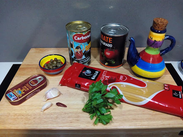 Buenos días! Para hoy os propongo un plato de pasta con un nombre un tanto peculiar. Típica de la zona centro de Italia, esta salsa recibe su nombre debido a la prostitución en la Edad Media. Se dice que las mujeres que practicaban la vida alegre en las noches frías de invierno, tomaban pasta con esta salsa rica en calorías para entrar en calor y de ahí el nombre "sugo alla puttanesca" (salsa al puterío).