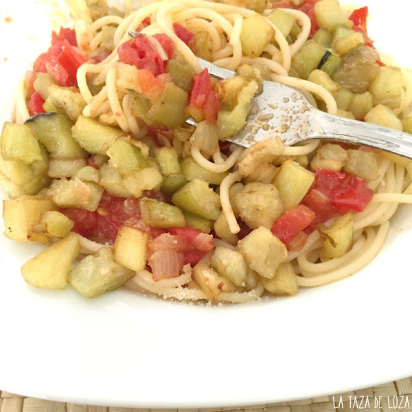 La salsa es a base de berenjenas y tomate, luego se le pone un buen queso rallado a ser posible un parmesano recién rallado, un poco de mantequilla y es un placer de plato, os lo aseguro. Esta salsa no se tiene que cocinar mucho tiempo, se deben de notar todas las verduras.