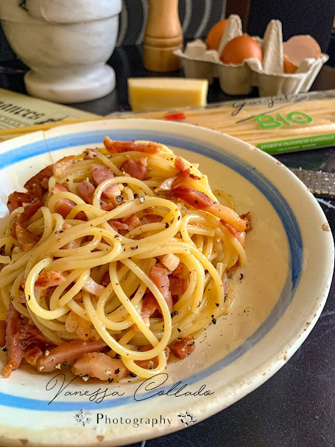Yo hasta hace unos años (antes de empezar con el blog) pensaba que la carbonara se hacía con Nata (crema de leche) y cebolla madre mía que golpe nos hemos pegado, no tengo ni idea de donde salió esta idea tan peregrina pero tela marinera, nada más alejado de la receta real.