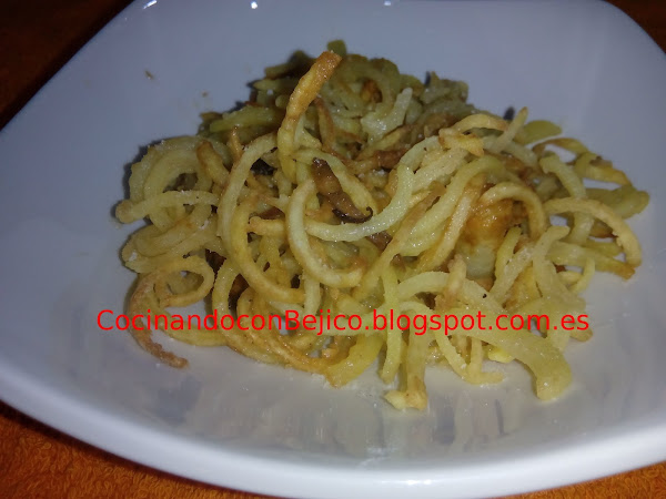 Aprovechando el cacharrin que me compré para hacer los espaguetti de calabacín, esta semana he hecho una prueba de usarlo con patatas para darle mayor utilidad.
