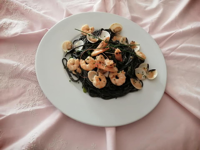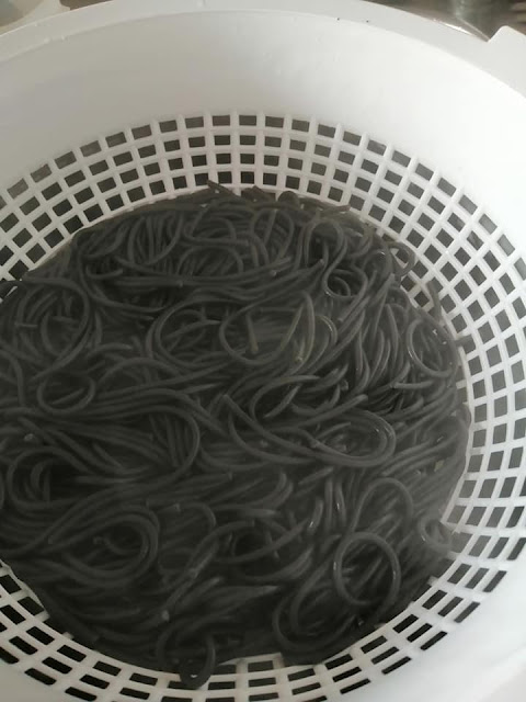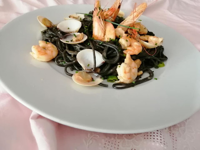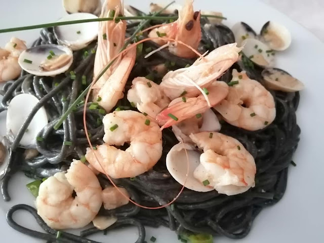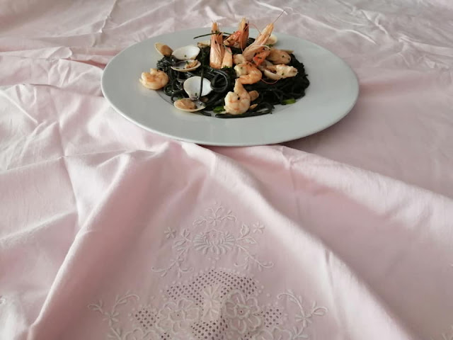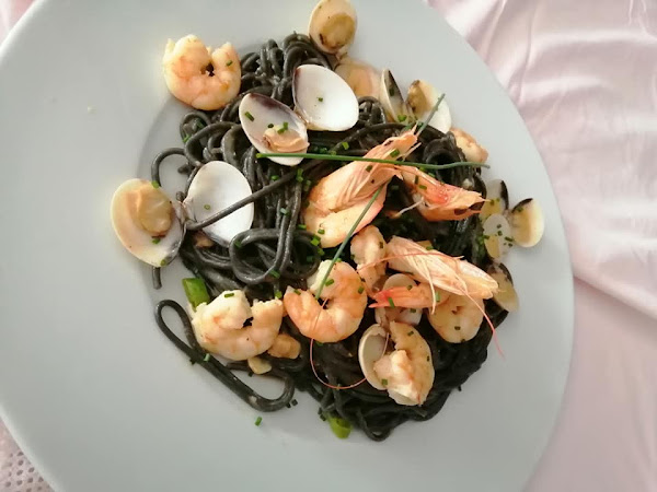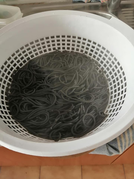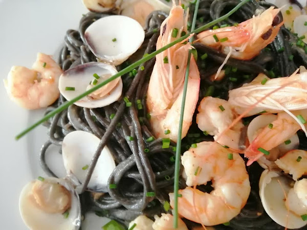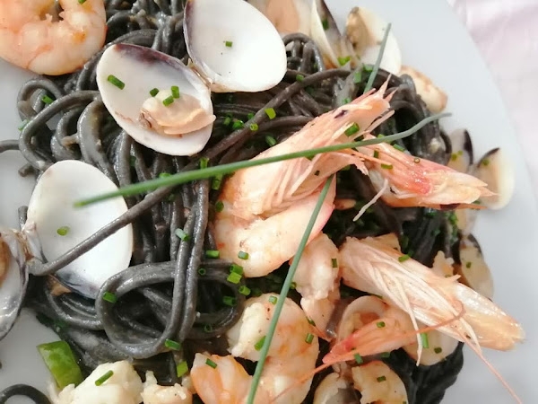 Cuando todo esté ya tierno, se le añade el spaguetti, se saltea todo y se emplata.