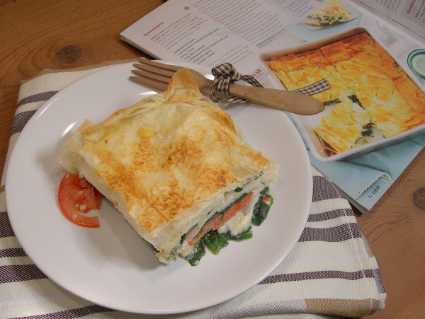 La receta de hoy es una Spanakopita y se trata una especie de empanada pero hecha con esta estupenda masa que es la Philo. La receta es de la revista inglesa Eat In.