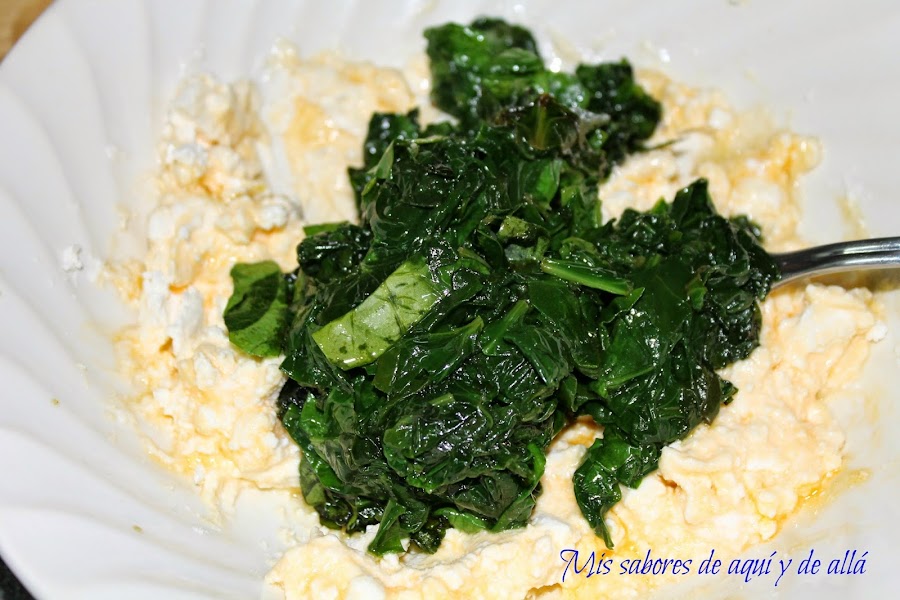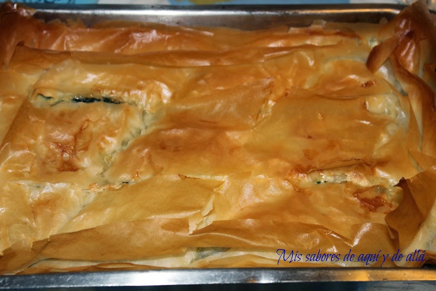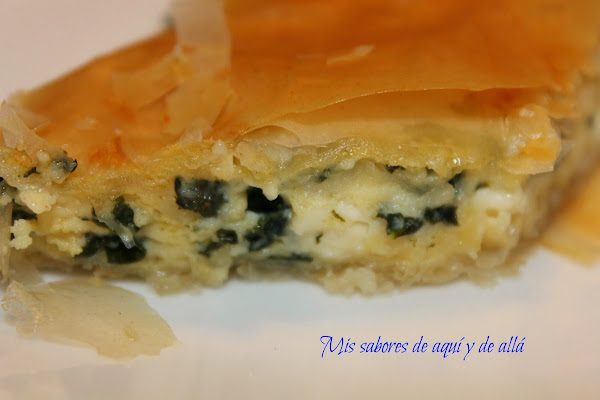 Well, today"s recipe is a great dish, quick to make, amazing look and a great way to eat spinachs, a vegetable I have to confess that I hate. I have to make great efforts to eat them. The edges of this pie, so golden and crispy invite you to take a bite and the intense flavor of feta cheese, always adds that something special ...