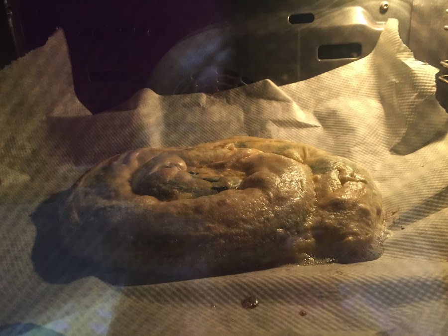 10. Horneamos durante 45 minutos a 200ºC, vigilando que no se dore en exceso. En caso que veamos que se dora enseguida, podemos cubrirlo con papel de aluminio, a mi no me hizo falta. Sacamos del horno y dejamos que temple un pelin. La pasta filo al cortarla es quebradiza, no os preocupéis si se rompe un poco, es totalmente normal.