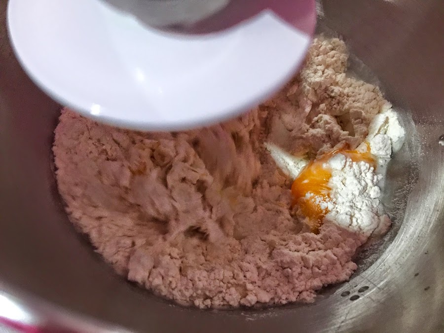 1. Ponemos en el recipiente de la KA la harina junto con la yema de huevo, el aceite, el agua templada y la pizquita de sal. Amasamos a velocidad baja durante 6 o 7 minutos. Dejamos reposar la masa 5 minutos. Amasamos durante 6 o 7 minutos mas. Dejamos de nuevo reposar la masa 5 minutos. Amasamos por última vez durante 6 o 7 minutos. Con estos amasados y pausas conseguiremos una masa muy elástica. Ponemos la masa en un bol, que habremos aceitado previamente, y la dejamos reposar, cubierta con un trapo, durante 30-45 minutos.