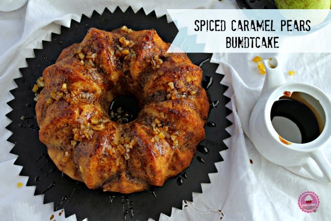 Hoy empieza mi andadura con los #Bundtbakers , son un grupo que se reune una vez al mes para hornear deliciosos #BundtCakes en base a unos ingredientes o tema propuesto . Cada mes hay un anfitrión que elige el tema central de nuestro #BundtCakes . Este mes de octubre ha sido Lauren de Sew You Think You Can Cook quién propuso el caramelo como ingrediente común en todos nuestros #BundtCakes . Yo he elegido peras caramelizadas con una mezcla de especias que dan un toque muy jugoso a este #BundCake . J